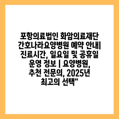 포항의료법인 화암의료재단 간호나라요양병원 예약 안내| 진료시간, 일요일 및 공휴일 운영 정보 | 요양병원, 추천 전문의, 2025년 최고의 선택”