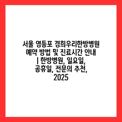 서울 영등포 경희우리한방병원 예약 방법 및 진료시간 안내 | 한방병원, 일요일, 공휴일, 전문의 추천, 2025