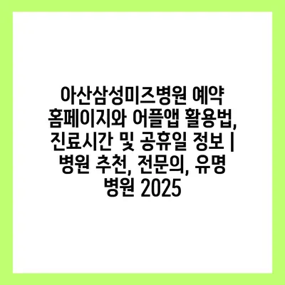 아산삼성미즈병원 예약 홈페이지와 어플앱 활용법, 진료시간 및 공휴일 정보 | 병원 추천, 전문의, 유명 병원 2025