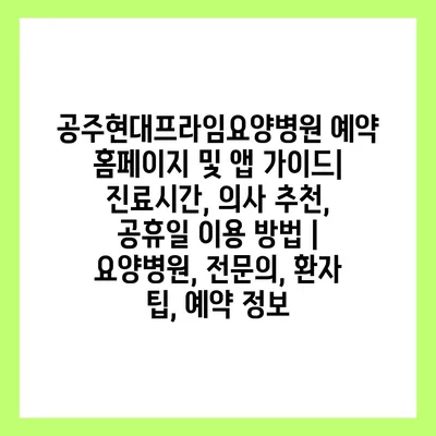 공주현대프라임요양병원 예약 홈페이지 및 앱 가이드| 진료시간, 의사 추천, 공휴일 이용 방법 | 요양병원, 전문의, 환자 팁, 예약 정보