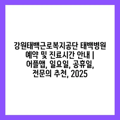 강원태백근로복지공단 태백병원 예약 및 진료시간 안내 | 어플앱, 일요일, 공휴일, 전문의 추천, 2025