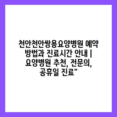 천안천안쌍용요양병원 예약 방법과 진료시간 안내 | 요양병원 추천, 전문의, 공휴일 진료”