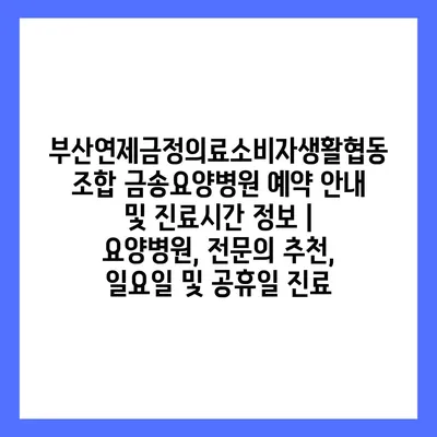 부산연제금정의료소비자생활협동조합 금송요양병원 예약 안내 및 진료시간 정보 | 요양병원, 전문의 추천, 일요일 및 공휴일 진료