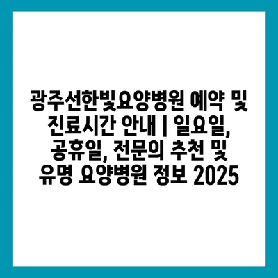광주선한빛요양병원 예약 및 진료시간 안내 | 일요일, 공휴일, 전문의 추천 및 유명 요양병원 정보 2025