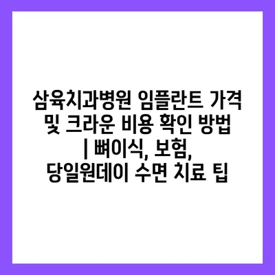 삼육치과병원 임플란트 가격 및 크라운 비용 확인 방법 | 뼈이식, 보험, 당일원데이 수면 치료 팁