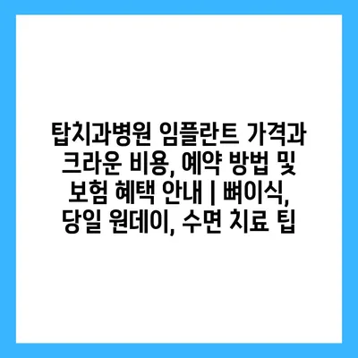 탑치과병원 임플란트 가격과 크라운 비용, 예약 방법 및 보험 혜택 안내 | 뼈이식, 당일 원데이, 수면 치료 팁