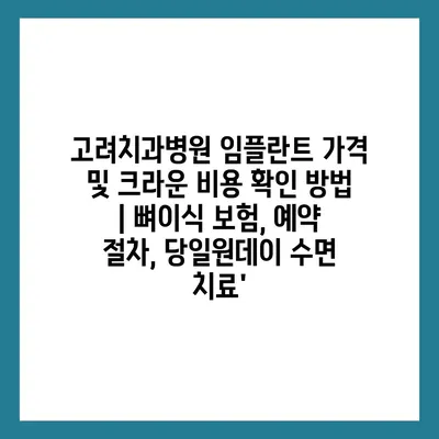 고려치과병원 임플란트 가격 및 크라운 비용 확인 방법 | 뼈이식 보험, 예약 절차, 당일원데이 수면 치료’