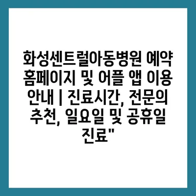 화성센트럴아동병원 예약 홈페이지 및 어플 앱 이용 안내 | 진료시간, 전문의 추천, 일요일 및 공휴일 진료”