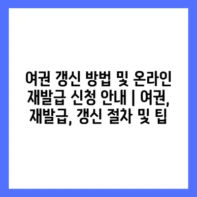 ✅ 여권 갱신 절차 및 팁을 지금 바로 알아보세요.
