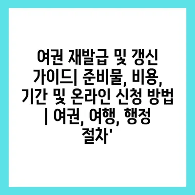 여권 재발급 및 갱신 설명서| 준비물, 비용, 날짜 및 온라인 신청 방법 | 여권, 여행, 행정 절차’에 대해 자주 묻는 질문 TOP 5