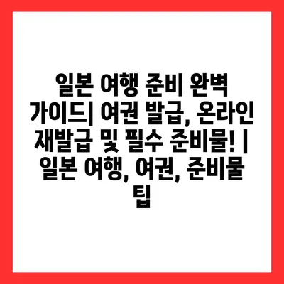 일본 여행 준비 완벽 설명서| 여권 발급, 온라인 재발급 및 필수 준비물! | 일본 여행, 여권, 준비물 팁