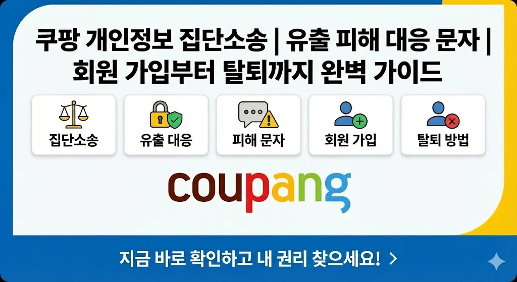 쿠팡 개인정보 집단소송에 대해 알아보겠습니다. 2025년 11월 발생한 쿠팡 대규모 개인정보 유출 사태로 약 3,370만 건의 고객 정보가 외부에 노출되어 역대 최대 규모의 집단소송이 진행되고 있습니다. 이 글에서는 쿠팡 개인정보 집단소송 참여 방법, 개인정보 유출 현황, 쿠팡에서 발송한 문자 내용, 회원 가입 및 탈퇴 방법까지 상세히 정리했습니다.